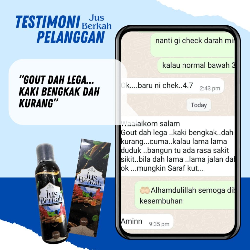 Feedback pelanggan dah BEBAS GOUT dengan JUS BERKAH